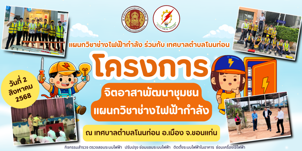 วันเสาร์ที่ 2️⃣ สิงหาคม 2568 🗓️ ✨ แผนกวิชาช่างไฟฟ้ากำลัง 🔌 ร่วมกับเทศบาลตำบลโนนท่อน 🏘️ ดำเนินโครงการจิตอาสาพัฒนาชุมชน
